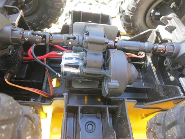 La segunda pieza importante del rompecabezas es el montaje de la transmisión. Visto otros y la orientación de la transmisión. Esto no es necesario y ya que tengo una base tan corta necesitaba los ejes de transmisión para estar más en línea con el fin de conseguir que funcione. Otra vez un simple soporte 'L' con ella montada en el lado hizo el truco. Nota que esta imagen muestra que la parte trasera tiene el normal fijo los ejes. Admito que primero completa el carro con buey de rueda 2 normales pero con los ejes de base y cerrado de corta que la cosa no gire bien en una pequeña caja de arena ;) Cuando tenía una carga era aún peor.