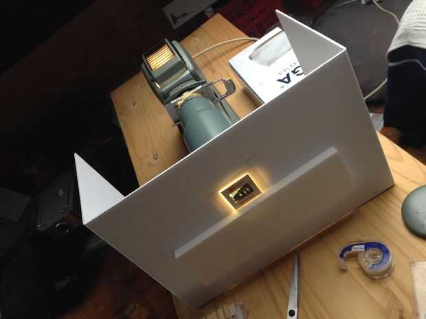 1. Tome los 2 bloques de polystyere y seguro en la base de la placa de montaje con los lados doblados, para obtener un ángulo de 90 grados bien he utilizado bloques de 7 x 7 cm pero nada cerca haría también.
