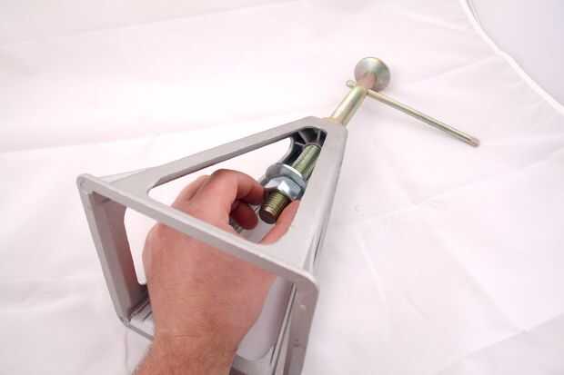 Para lograr esto, en primer lugar, deslice la varilla roscada que viene con el soporte del gato en la base. Luego, coloque la arandela de reborde sobre la parte inferior de la varilla roscada y seguir con la segunda tuerca.