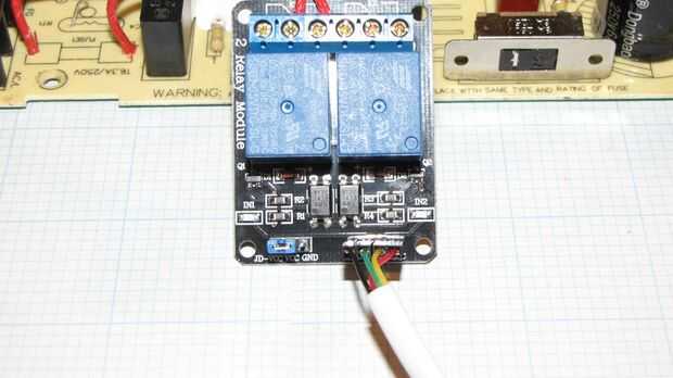 - Un módulo de dos relés (como en la foto) utiliza cuatro hilos: 5v, GND, 2 1 y señal de la señal.