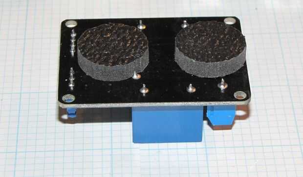 - Se aplican dos patas de goma autoadhesivas en la parte inferior del módulo de relé, para servir como separador y para mantener el lado de soldaduras del módulo de cortocircuito contra cualquier cosa.