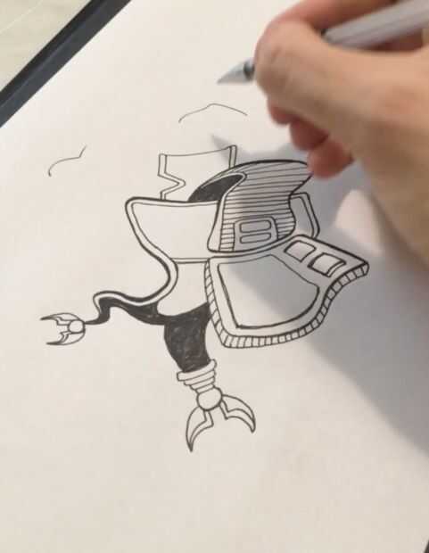 Cuando garabatos a veces comete error y formas de las líneas no se ven lo que quisiste que se vean, así que el truco es improvisar. Aquí me gustó cómo una parte veía sombra y redondeadas líneas para que se vea mejor que la primera idea. También detrás de formas siguió líneas al otro lado y les hacen parecen que saben la línea había sido continuada y es parte de una forma pero otra forma es la manera.