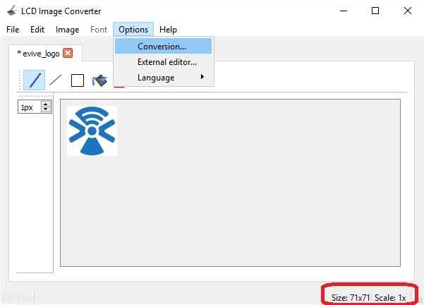Con la herramienta de LCD_Image_Converter , nos pondremos la imagen en forma hexadecimal.
