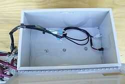 4. Corte una ranura para los cables. ¿Recuerde que los cables que cuidadosamente vestida en la parte trasera? Corte una ranura profunda alrededor de 1 pulgada y 1/2 pulgada de ancho para los cables. Corte la ranura en la parte superior de la caja usando una amoladora angular y moto-tool. Todavía puede cerrar la tapa sobre los cables, y puede ejecutar a través de la parte superior de la batería al controlador.