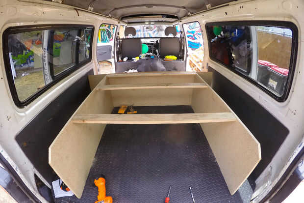 el mayor problema con convertir su furgoneta en una máquina para dormir es que usted perderá la capacidad de realizar transmisiones, camas, carros, pedacitos de madera o ganado, a veces todos a la vez. Se trata de una plataforma fácil de dormir desmo