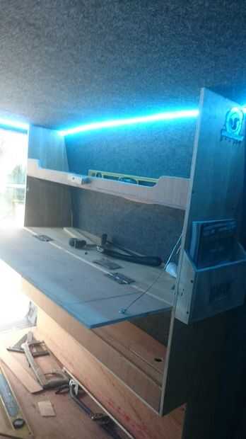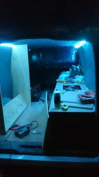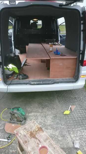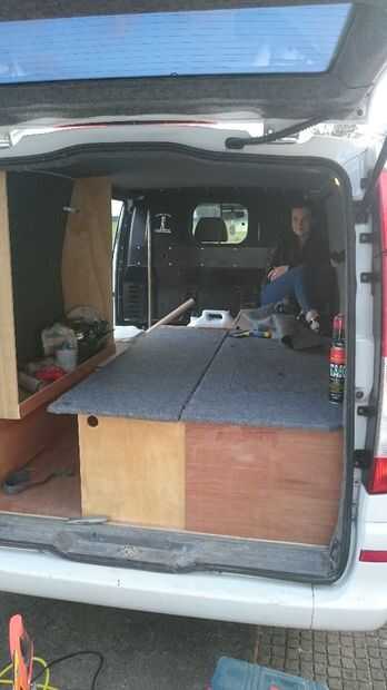 El diseño fue diseñado específicamente para maximizar el espacio de almacenamiento, dormir 2 personas cómodamente, pero también trabajar como una van durante la semana y permitir hojas de 8ftx4ft en el centro de la van.