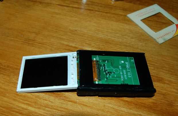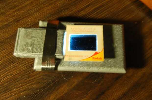 Apenas para la diversión que quería hacer este "complemento" como si perteneció a la original del proyector por el paquete del LCD de la pintura con pintura metalizada "martillado textura". También marco la pantalla LCD con un soporte de diapositivas "Kodak Kodachrome" vintage original.