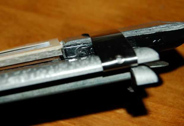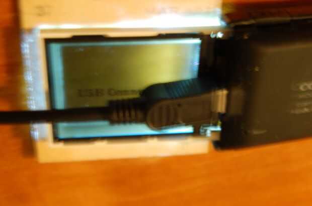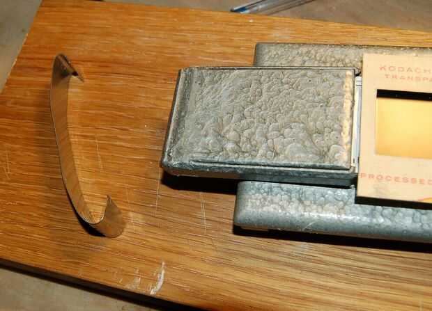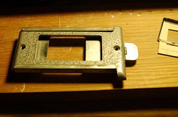 Necesitaba algo para el caso de llavero a la placa del interruptor de la luz que también podría cambiarse con el fin de conectar el USB para recargar el llavero y cargar nuevas fotos. Pensé en varias opciones pero quería algo de baja tecnología para caber con este proyecto, por lo que sólo doblar una pieza de metal para actuar como un "clip". Llevó a cabo la firma caso pero era fácil de quitar y no parecía fuera de lugar en el dispositivo. Por último me ha tocado el tornillo con un poco de la pintura en aerosol para mezclar.
