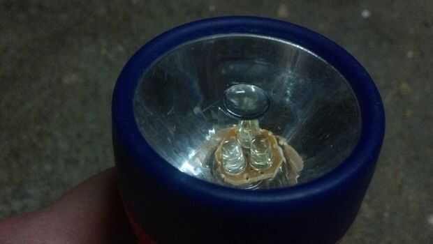 como huracán Sandy fue acercándose a la zona de Nueva York, reunió a todas nuestras linternas incluyendo el regalo barato que como esta linterna de Mets. Me aseguré que las baterías y una linterna había una bombilla mala a pesar de que tenía un montón de pilas C para utilizar en ella. Pensé en una manera de hacer mi propia bombilla de reemplazo usando la base de la bombilla quemada hacia fuera, algunos LEDs salvado de algunas luces de patio y un rincón de un tablero de PC.