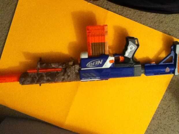 este es mi rifle de asalto de nerf, yo lo llamo el Nerf N-strike Elite Executer CS-12Paso 1: Primero necesita el Nerf N-strike Elite rayven CS-12 (yo usé la versión de stinger)Paso 2: Entonces usted necesita el accesorio de barril de Nerf N-strike El