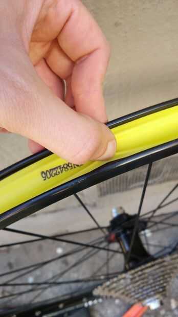 Rueda más conjuntos vienen con cinta para proteger el tubo de bordes afilados y habló extremos. Ya que estamos eliminando los tubos, ya no necesitamos la cinta. Escoge en el borde de la cinta hasta que se suelte. No dude en cortar la cinta si te está dando problemas. Fondo friegue el interior de la llanta con agua y jabón y permitir que se seque.