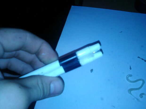 Ahora para mantener un sello hermético, vas a tener que poner una cantidad generosa de pegamento entre los tres barriles, usted puede incluso pegar todos de la manera abajo si desea.