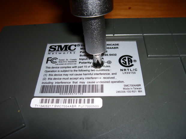 A continuación, va abrir el router. Tenga cuidado sin embargo antes, de empezar a palanca de la caja de plástico y se encaja a presión. Generalmente hay un tornillo ocultado bajo la etiqueta con el número de serie, etc.... en la parte inferior de la unidad. Es el indicador para el fabricante para ver si han anulado la garantía. Ah y por cierto, este instructable\ definitivamente anularía la garantía. Algo que no tomar ninguna responsabilidad.