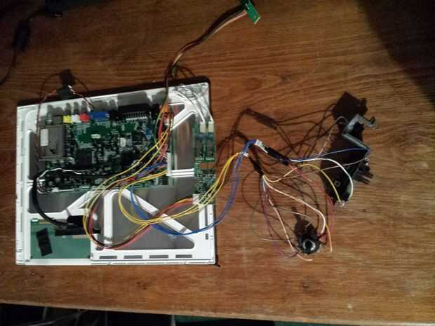 La TV plana por otra parte tenía una serie de microinterruptores montados en pcb control fuente AV, volumen, energía etc., así que tuve que encontrar la manera de vincular los dos juntos.