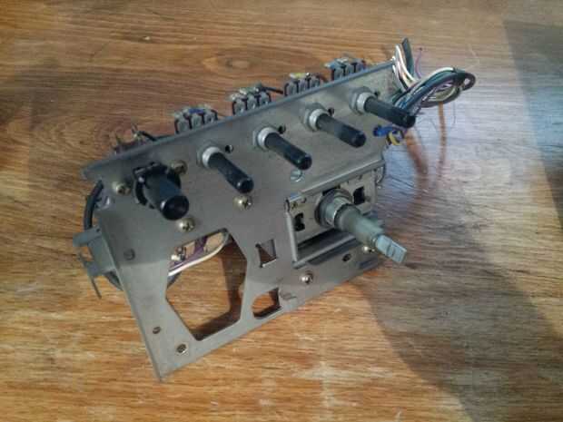 El control de volumen fue muy divertido averiguar y es una de mis partes favoritas de la construcción - conservó el conjunto existente de slider, pero montado un microswitch de la palanca en cualquiera extremo (ver foto), para deslizar hacia adelante y hacia atrás haga clic interruptores para el volumen arriba/abajo el interruptor respectivamente. El interruptor de circuito fue conectado al circuito principal, probado y puesto a un lado listo para el montaje posterior.