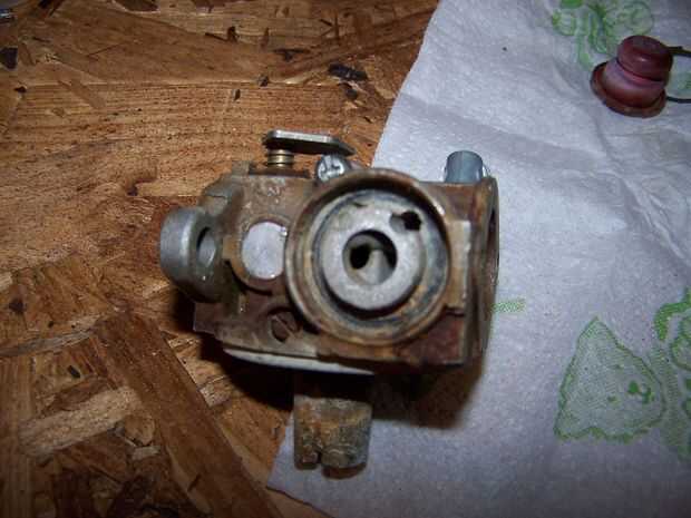 En este carburador que pude sólo tire de la bombilla buenísimos y apareció justo al lado. Hay un pequeño anillo de retención que pueda tener que ser forzadas hacia fuera antes de quitar la bombilla. Mi anillo era oxidado por lo malo solo apareció cuando tiró en la bombilla.