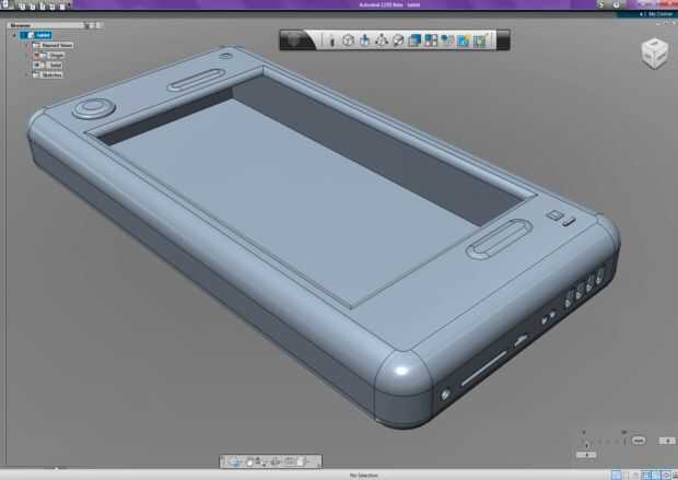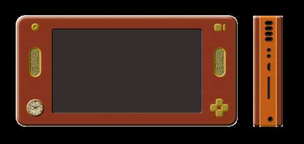 La vista frontal muestra la pantalla en el centro que será 12" por 24" x 2,5" en general, incorporando un 18.5" LCD con pantalla táctil, un par de altavoces estéreos Harman Kardon a ambos lados de que con una parrilla de bronce/oro del acento, un reloj de bolsillo parcialmente desensamblado pero todavía funcional como un reloj (parte inferior izquierda), un botón de encendido (parte superior izquierda), mute botón y volumen rueda de desplazamiento (arriba a la derecha) y cuatro botones de dirección (abajo a la derecha) para girar manualmente la pantalla. Los botones direccionales pueden ser innecesarios, si es así esa zona estará abierta para algo más (o simplemente izquierda como madera normal).