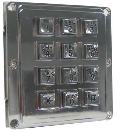 El mismo vendedor tiene un teclado compatible con estándar botones tonos metálicos que actualmente vende por aproximadamente $40 que está diseñado para reemplazar el teclado actual, pero que tiene el beneficio añadido de proporcionar una placa de montaje para montar la placa de circuito coinless directamente detrás del teclado en el interior de la carcasa delantera del teléfono y el conector de 7 pines del teclado que se ajusta a la placa de circuito Coinless. Este teclado se monta con 4 tornillos en la parte trasera (interior) de la carcasa frontal de su teléfono. Si su teléfono no tiene orificios en estas ubicaciones de montaje del teclado, fácilmente se perforan con una broca de taladro estándar (ser muy cuidado de no perforar sólo el acero estructural en la cubierta frontal y no a través de la armadura de cromo sobre la faz de su teléfono) y la placa de circuito coinless puede sujetarse con tornillos autorroscantes de 1/2 pulgada largo tamaño 8.