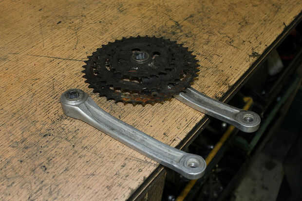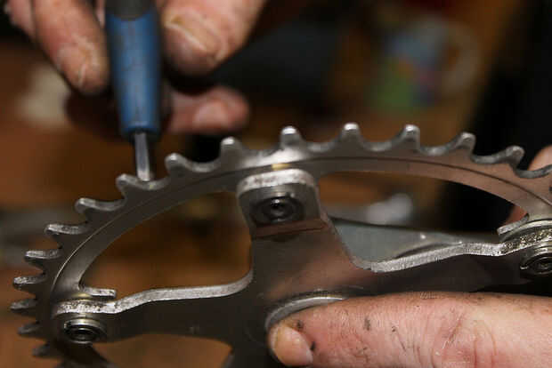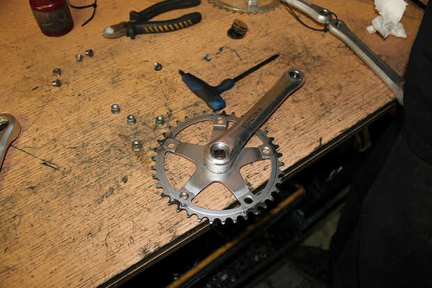 Encontramos un doble sistema de manivela de un viejo corredor y había quitado el anillo más grande de la cadena. (Lo siento no fotografía de los anillos doble).