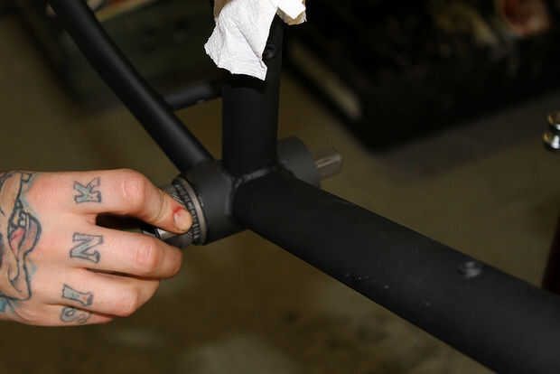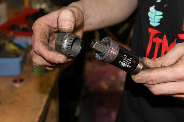 Asegúrese de que la grasa las roscas en la parte inferior soporte (2ª foto de este paso) como esta zona de una bicicleta es mucho abuso y a menudo pueden agarrar si no bien engrasado.