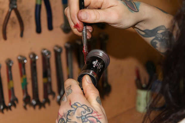 Poco a poco del hilo de rosca en el lado derecho de la caja de pedalier en su marco teniendo cuidado de no para cruzar el hilo de rosca.
