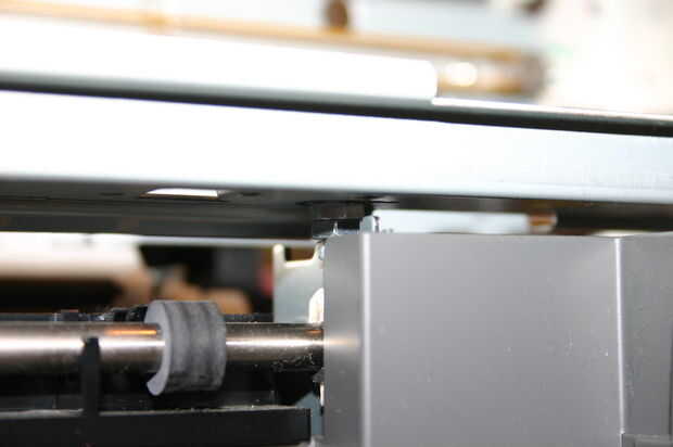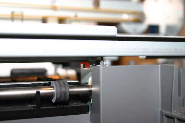 Ahora que he decidido la cantidad que quiero levantar la Asamblea impresión puedo comenzar insertando espaciadores para obtener la altura deseada. El lugar más fácil para empezar es con el sistema de riel delantero. Como se une con dos tornillos simplemente compré algunos tornillos 4-40 más y utiliza dos de las tuercas que vinieron con ellos como separadores. Una vez que el ferrocarril se atornilla detrás en él se realiza con y usted puede pasar a la porción de montaje de cabezal de impresión más complicada.