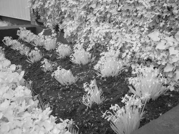 Esta arriba tiene los canales de rojo/azul invertidos como el último paso, luego tono de auto aplicado. Me gusta. Que el árbol tiene el mismo pero jugaba con el tono/saturación, los otros son cómo hace verde, los narcisos son blancos como son las hojas.