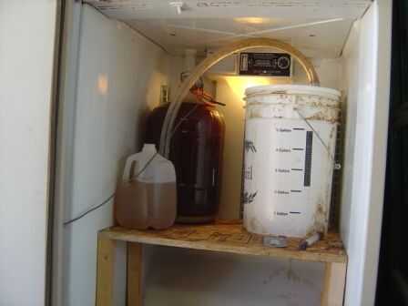 La parte inferior de la mayoría de los refrigeradores tienen una joroba, o inclinada hacia atrás para dar cabida el compresor. Querer maximizar el espacio utilizable para fermentadores tantos como sea posible, quería un estante para levantar sobre esta joroba. Después de algunas mediciones, me di cuenta que si salí de 24" de la sala por encima de la plataforma, tiene suficiente espacio para mi fermentadores con una bolsa de aire o expulsión de adjuntas y todavía tienes espacio para botella condición alto 22 oz botellas de abajo. Corté un pedazo de 3/4" OSB con el tamaño correcto. Utilizar OSB simplemente porque era lo que tenia disponible en mi montón de chatarra. A continuación, determina la longitud de las piernas y corte de unos 2 X madera de desecho. Entonces determiné que las patas traseras tendrían que sentarse para que no interfieran con la parte angulada en la parte posterior. Después de marcar las posiciones de pierna, había atornillado en su lugar y luego atornilla las patas delanteras en el muy delantero. Orienté las piernas para dar la máxima cantidad de acceso a la plataforma inferior. Cuando he intentado instalar el estante, me encontré que eran los soportes para el estante de la parte inferior de la manera. Un toque rápido con un martillo rompió el plástico frágil y permitió la plataforma se deslice en su lugar.