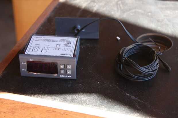 Utilizar un controlador digital de Ranco, que funciona muy bien, pero es sólo una etapa, lo que significa que puede controlar cualquier calefacción o enfriamiento, pero no ambos al mismo tiempo. Raramente consigue muy caliente durante el día y luego super frío esa misma noche, por lo que no ha sido gran parte de un problema. La masa térmica de 15-20 galones de cerveza suele ser suficiente para compensar las fluctuaciones de la mayoría. Lo bueno de esto es que es esencialmente listo. Puedo reemplazarlo con un controlador dual de la etapa como tengo en mi kegerator, que requerirá el cableado un poco, pero debe hacer la operación más conveniente.