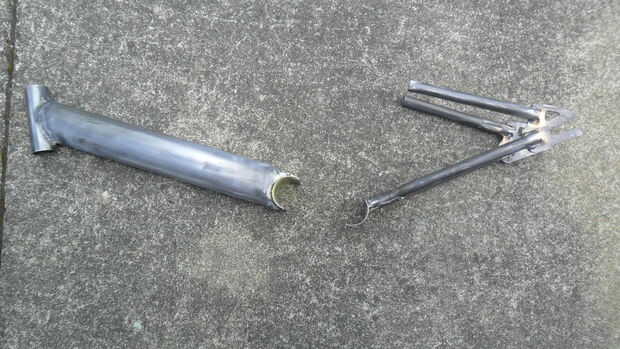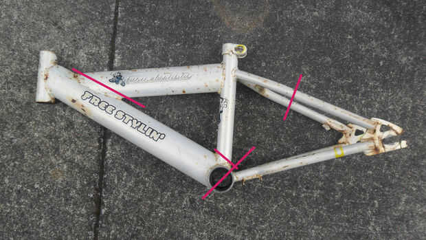 Corte a través del soporte inferior. Asegúrese de que las tazas del rodamiento están fuera de la caja de pedalier como estos será más difícil a la sierra a través de que el soporte sí mismo. Limpiar las piezas de pintura más adelante.