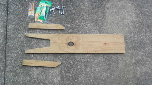 Corte un agujero para la rueda trasera. Hice mía mediante el uso de las estancias de cadena como guía.