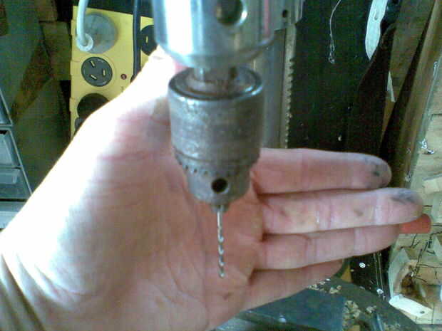 Algunas veces usted necesita cortar un poco la parte más fina del eje (de la tirada - etapa b) para que las mordazas de banco taladro abrazadera alrededor de la parte más gruesa del árbol más cercano a la tirada (fase una)