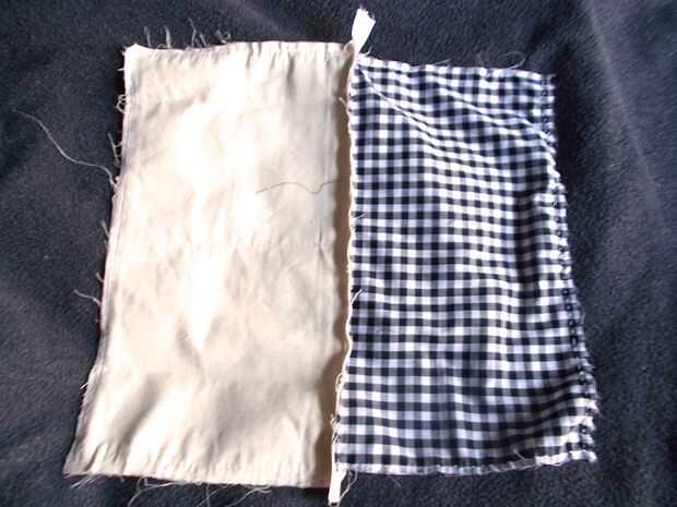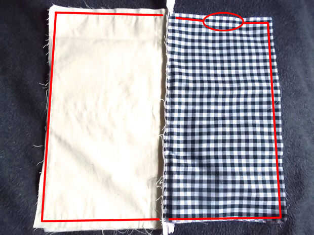 Abra la cremallera y arreglar la tela, como se muestra en la primera foto: los rectángulos de tela del delantal de Instructables deben hacer frente uno al otro y la guarnición de rectángulos de tela deben igualmente cara. Coser a lo largo de los tres bordes no cremallera de los rectángulos. Asegúrese de que dejar un pequeño agujero en la tela de la guarnición a utilizar para dar vuelta todo adentro hacia fuera más adelante.