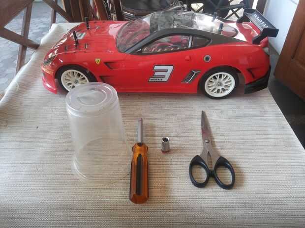 Conversión RC touring neumáticos en llantas de drift con vaso de plástico (1 / 4 paso)