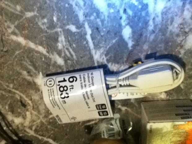 En la ferretería tenía una opción. Podría conseguir un kit de la lámpara que vino con un calcetín y un acorde de potencia por $10 o podría conseguir un acorde de extensión de $1,50 y una toma de corriente por $2.50. Supongo que me fui de la manera.