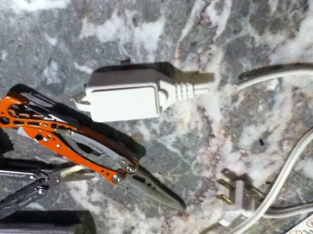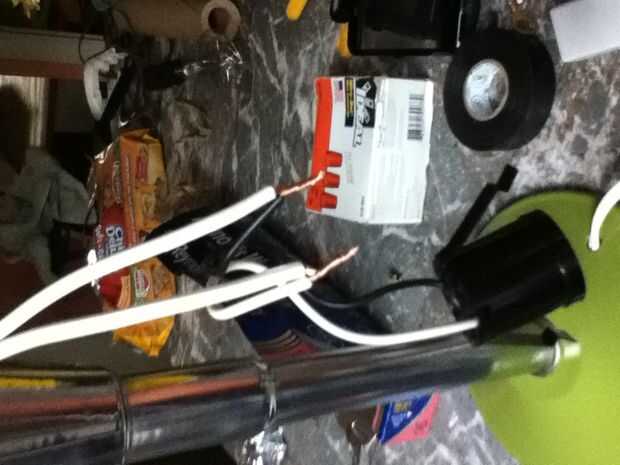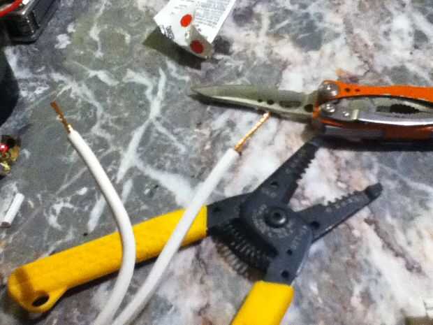 Simplemente corte el extremo de la extensión y luego la alimentación a través de la lámpara. Necesito cortar el cable para instalar el interruptor del sensor, pero es más fácil si lo alimentan a través de y para conectar la toma primero. Después de la alimentación a través de la tiró los dos cables aparte y había pelado los extremos. 3/4" de alambre expuesto es todo lo que necesitas. 1/2" es realmente todo lo que necesitas pero prefiero 3/4". No quiero ningún cable desnudo sobresale más allá de la tuerca para alambre. Mirando el lado de un alambre era liso y al otro lado tenía las costillas. La toma de reemplazo que elegí fue con un negro y blanco conduce. el lado liso es el caliente que fue atado con alambre para el cable negro en el socket. Alambre con costillas es el neutro así fui al blanco.