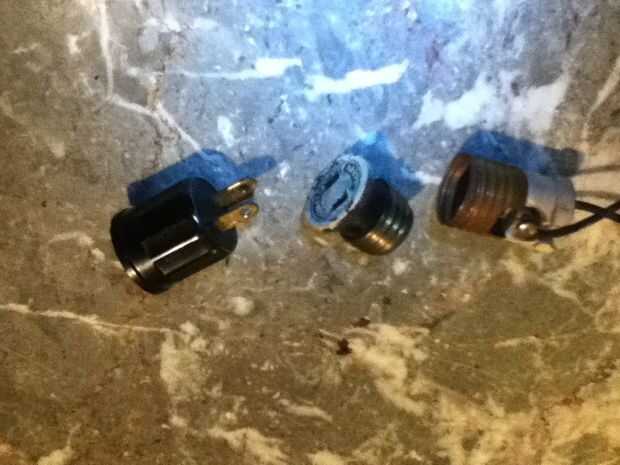 Cuando quité el enchufe tengo una sorpresa. Descubrí que había un zócalo de lámpara en la cual se atornilla un adaptador y en eso fue un enchufe en el zócalo de lámpara. Lo más bizarro que he visto. Ni idea por qué fue así. No hay forma que es original. quien readaptar la lámpara tomó el tiempo para la conexión de la soldadura pero luego lo hizo en el zócalo. De la edad de la toma que estoy pensando en esto se hizo en algún momento en los años 60 y sólo puedo asumir eran medicamentos implicados.