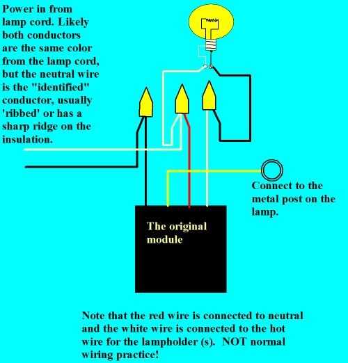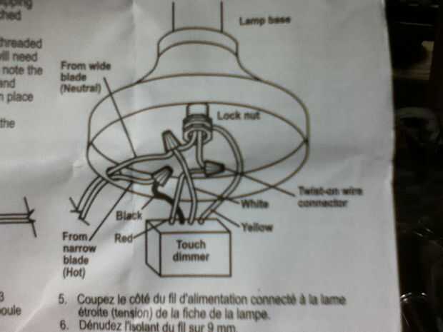 Aquí es donde mi interior idiota decidió salir y jugar.   Pensé en dejar esta parte del instructable pero luego decide ser honesto por lo demás pueden evitar mi error.   Mientras trabajaba en la lámpara, estaba ya trabajando en este instructable.   Para este paso no gusta la forma de la foto del diagrama de cableado que viene con el interruptor mirado así que saltó en Google e hice una búsqueda rápida y encontré una imagen de uso que a primera vista parecía exactamente el diagrama para mi interruptor.  Supongo que diagrama seguí.    Alambré hasta el nuevo interruptor agregado una bombilla y enchufado para comprobar si fuera y confirmar mi genio.  Ya tenía la lista de la cerveza y la reaparición snappy para mi esposa que quería su detrás de la mesa de la cocina.  El momento que conectado la lámpara entonces oír esto "POP" y luego salió encendido en mi cocina.  Después de restablecer el interruptor de circuito de cocina inspeccionar el interruptor de la lámpara.   Al principio no pude averiguar lo que había sucedido.  Al principio pensé que había conseguido un interruptor mal.  Fue seguido el diagrama y fue muy cuidadoso con todas las conexiones y había envuelto todo con cinta aislante por lo que debe ser el interruptor... no podría estar yo.   Sólo para confirmar que era el interruptor y no me doble comprobé el diagrama de cableado.  En el diagrama descargado el cable blanco fue a la caliente de la toma y el cable rojo se fue a los neutrales pero mi encendido el blanco va a los neutrales y el rojo va a la toma de caliente.  Mierda.  Se puede rellenar sus improperios de la opción para lo que se oía en toda mi casa para los próximos minutos.  Afortunadamente los niños estaban fuera por lo que se salvaron.   Ya puedo aquí mi hijo.   "Papá ¿qué $* % * ^ significa?".   Esquivado esa bala por ahora pero es sólo una cuestión de tiempo...