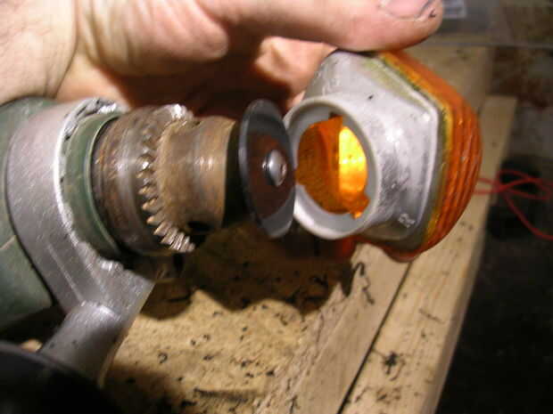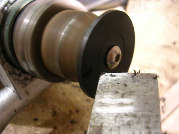 Yo enroscada de un taladro para usarlo como un torno. Perfore a través de un agujero del centro del disco y poner un perno a través de él y encerrar con una tuerca. Esto actuará como su eje. lugar en el taladro y con la punta de un cincel corte el lado para conseguirlo redondo, luego suavemente la máquina lo hasta que apretado ajuste, prueba ajustar regularmente para asegurarse de que encaja correctamente.
