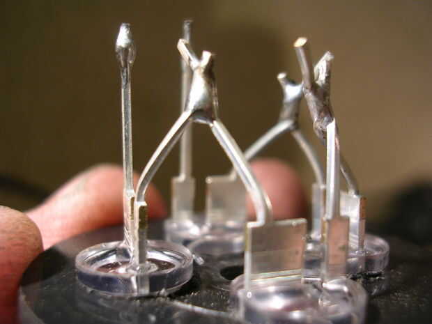 Los giros de la soldadura y poner alguna soldadura en las cimas de las dos piernas sin torsión (estañado)