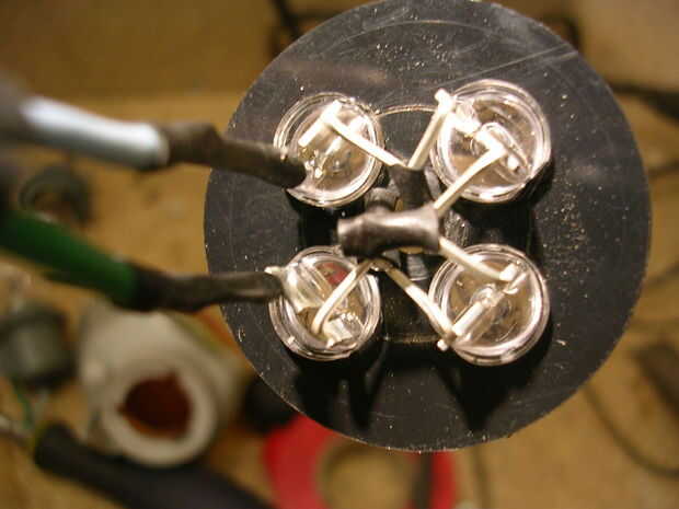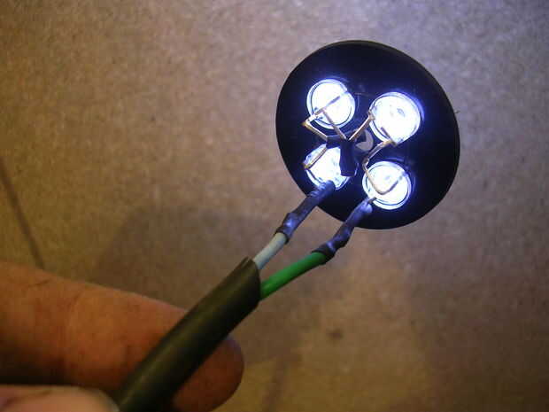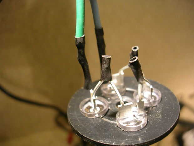 Cortar al antiguo sostenedor de la lámpara de los cables unen las bicicletas cableado. 6mm de los extremos de la tira, cubrir con un poco de soldadura, colocar en algunos sleaving de encogimiento de calor y soldadura de las dos piernas. Conecte el cable de tierra neutro vivo, positivo a la pata larga y la pata corta. Cuando se tapa soldada con calor encogen sleaving.