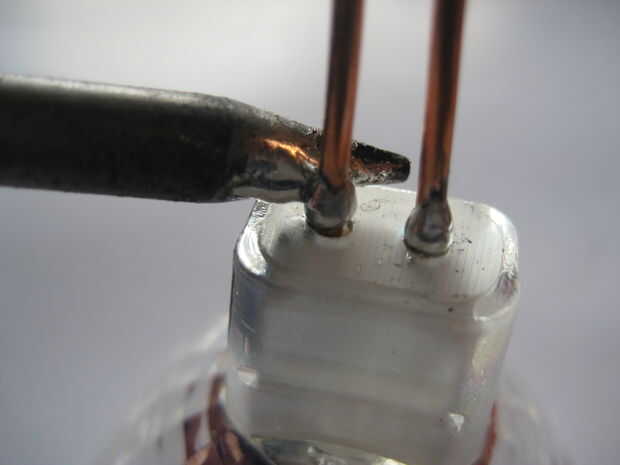 Luego poner una pequeña gota de soldadura en las piernas por fuera, esto dejará de ser capaces de ser empujado hacia adentro si se manipulan con cuidado.