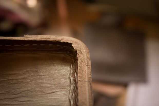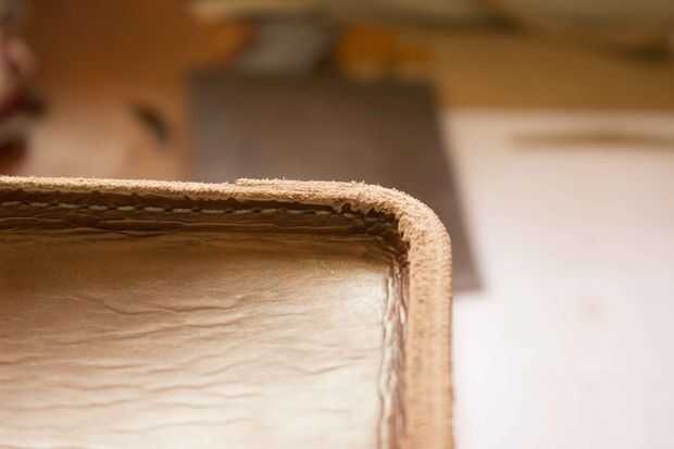 Puntada de silla de montar los refuerzos a la cañería del cuerpo y terminar los bordes. Incluso hasta como se muestra en las fotos y luego pulir.