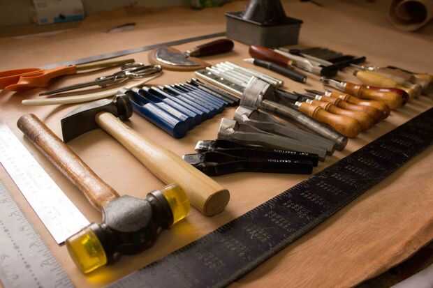 Tengo bastantes herramientas de cuero que he procurado (sobre todo de la Fábrica de cuero de Tandy) sobre los años. Las herramientas que se muestra no son los que tengo pero son la más usada (Olvidaste mi cortador de la correa). Para sacarle al principio con sólo algunas herramientas básicas como un cuchillo, borde recto, awl improvisada, agujas de costura. Pero como usted ampliar en su trabajo de cuero que definitivamente querrás obtener más herramientas. Esto mejorará grandemente la diversión y la calidad de su trabajo. También necesitará esponjas y trapos para teñir. Una superficie de corte es esencial. Tengo 4 tablas de cortar de cocina de plástico atornillados a mi encimera de corte. Haz un par de libros a través de buscar demasiado. Los que se muestran son mis favoritos (disponible aquí )