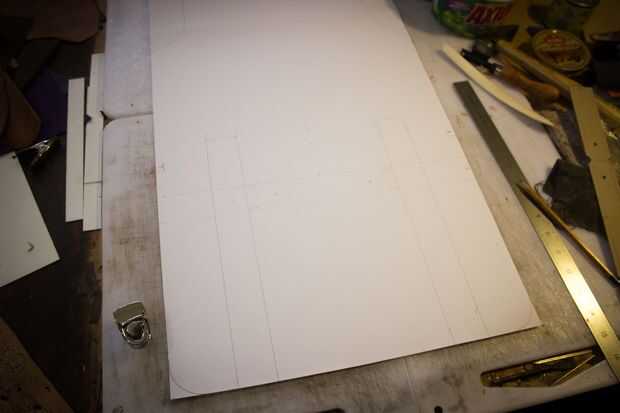 Hice algunos bocetos en papel y luego hice un poco de una escala de dibujo. Luego transferir todas esas dimensiones en una hoja grande de papel y utiliza para mi patrón. A más adelante transferir una pieza de tablero gris como un patrón permanente.