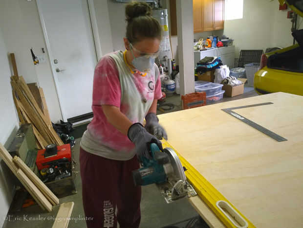 Una vez que tienes confianza con tu diseño (doble medida) entonces es el momento de copiar las tablas y es compatible con las dimensiones adecuadas. La Sierra de mesa es, por supuesto, la herramienta perfecta para rips cuadrados largo, sin embargo debido a que está trabajando en una furgoneta, muchos de los cortes no sean verdaderamente cuadrados. En este caso usted puede hacer con cualquier borde recto, como un nivel largo, fije a la madera contrachapada en el ángulo deseado y usarlo como una guía para tu sierra circular.