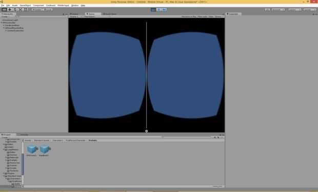 Una vez que presione play en la parte superior, verá una pantalla dividido y un aburrido mundo oscuro. Permite solucionar este problema. En primer lugar desea mover todos los objetos a 0,0,0. Entonces usted quiere avanzar el LMHeadMountedRig 0.4 para que cuando llegue a sus manos, usted puede verlas.