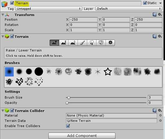 Puede crear un terreno para que cuando aparezca, usted puede caminar alrededor y ver propio mundo. Ir a la parte superior y seleccionar juego nuevo objeto objeto/terreno 3D. Una vez que hiciste eso, quieres hacer las coordenadas 250,250,250. Entonces puede ensuciar con la función de elevación que puede hacer su terreno único.