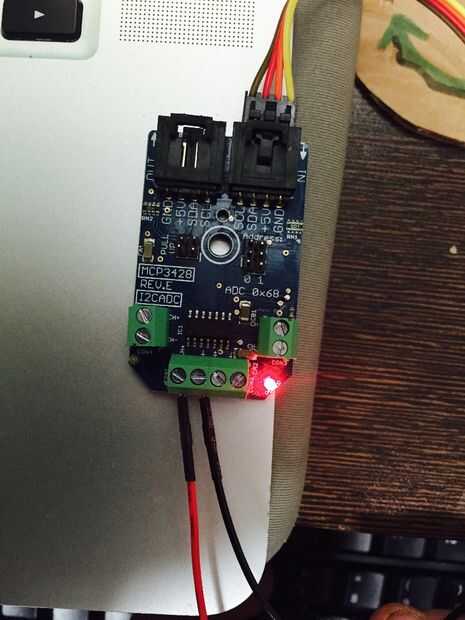 Conecte el MCP3428 con cable de conexión al canal 1 MCP3428 abordo.