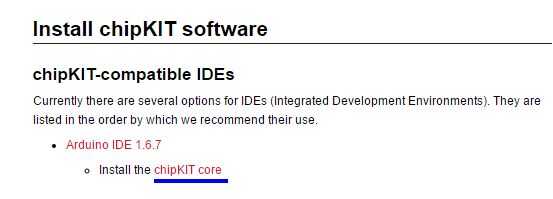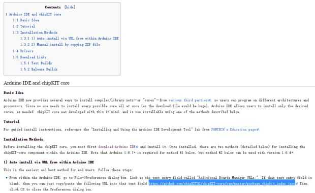 3. Desplácese hacia abajo de esa página hasta que vea este enlace: https://github.com/chipKIT32/chipKIT-core/raw/master/package_chipkit_index.json, guardarlo para más tarde.